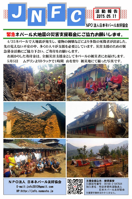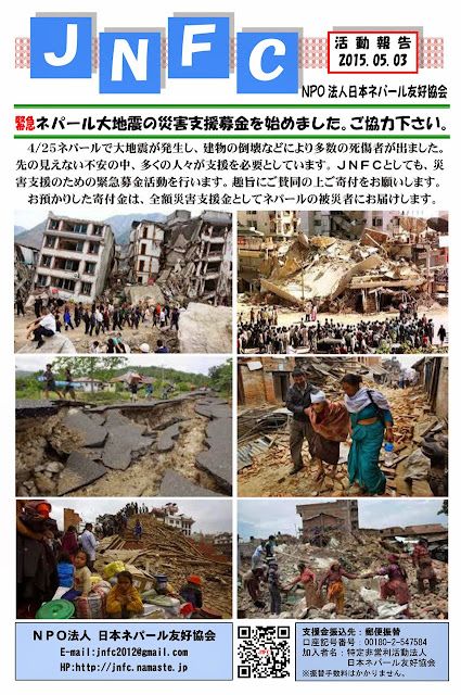 Donations will be held by the introducer or the Japan-Nepal Friendship Association, but the full amount will be lost to the disaster. The money will be delivered to the disaster victims in Nepal as relief money.
