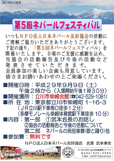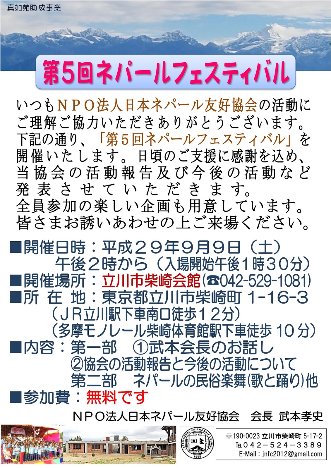 The 5th Nepal Festival will be held [September 9th (Saturday) from 2:00 PM] We look forward to your visit.